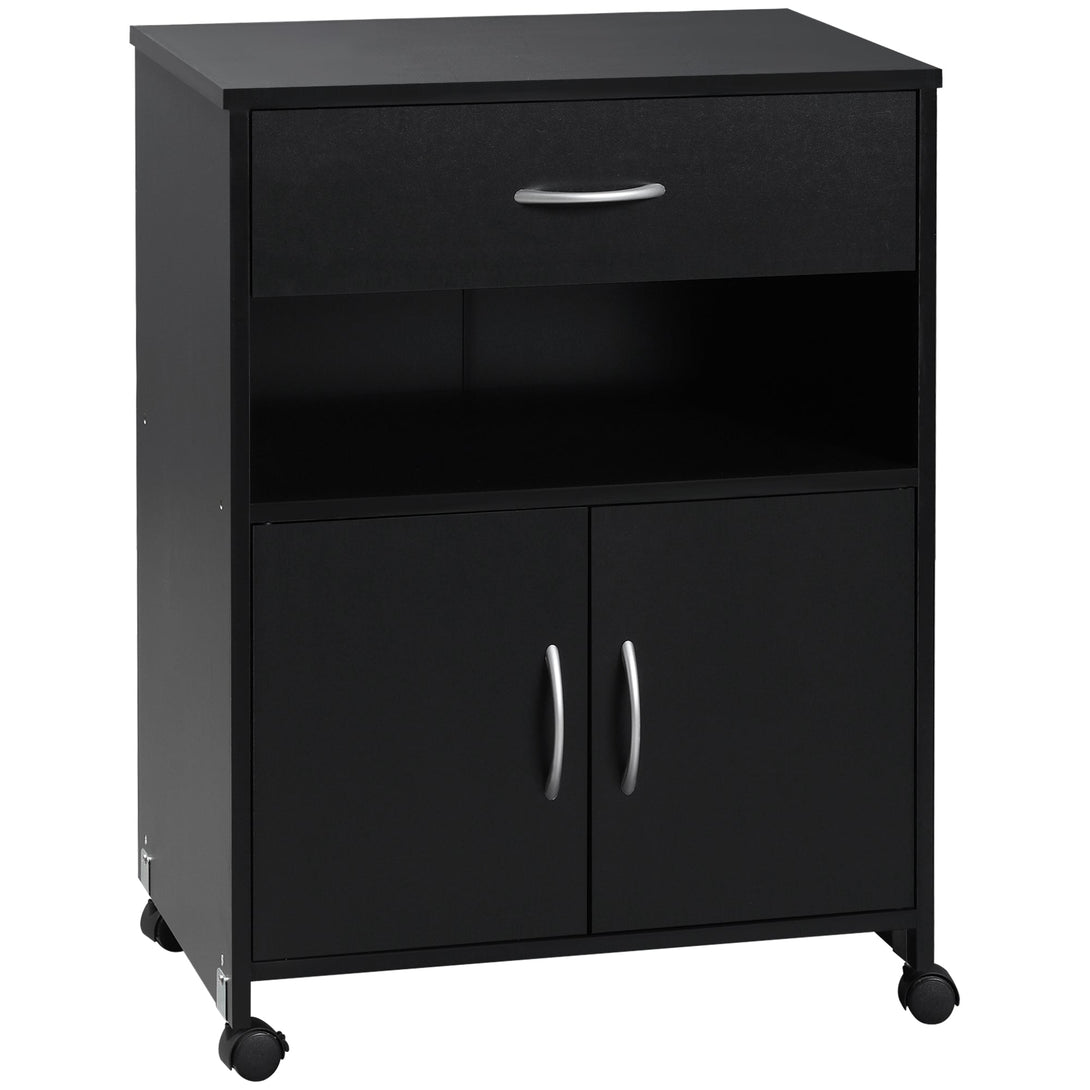 A smart go-to area for all office workers - this Vinsetto printer cabinet is the place to store stationery, refills and keep your much-needed printer. The top desktop is just the right size for the unit, with the middle shelf providing an easy-accessible place for paper. It also comes with a top drawer and two-door cupboard for storage. Made from particle board, this piece is sturdy: it's suitable for everyday use, finished with four wheels to move it around easily.