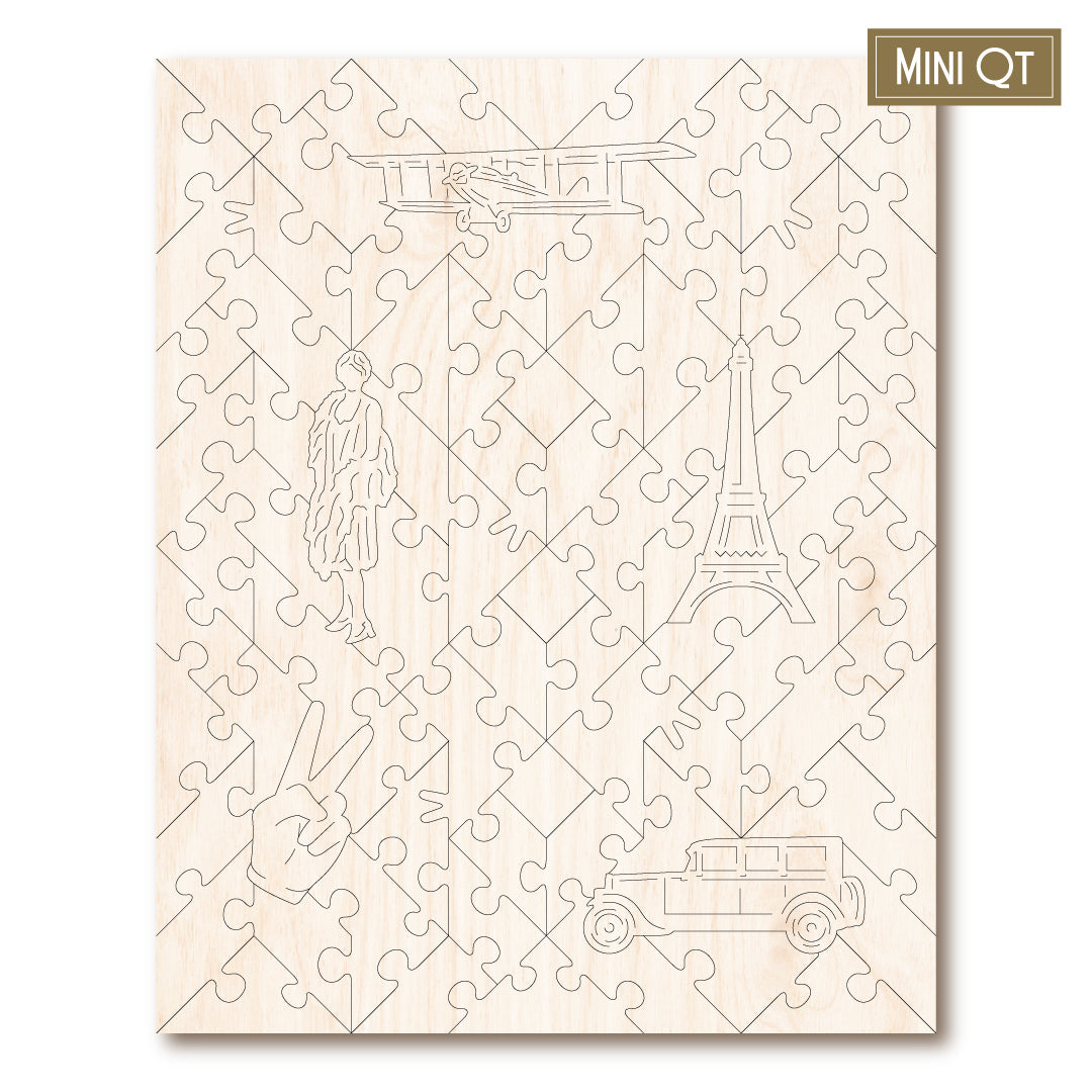Our MINI QT puzzles are laser cut from thick, 4mm plywood and include 5 whimsies - they make a great puzzle snack!