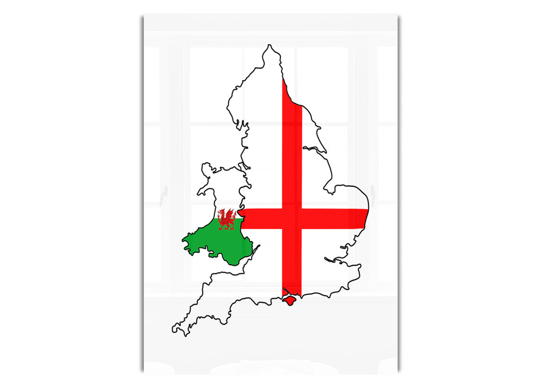 Wales And England acrylic print, UV printed onto 5mm thick acrylic glass. Comes with everything you need to hang on your wall.