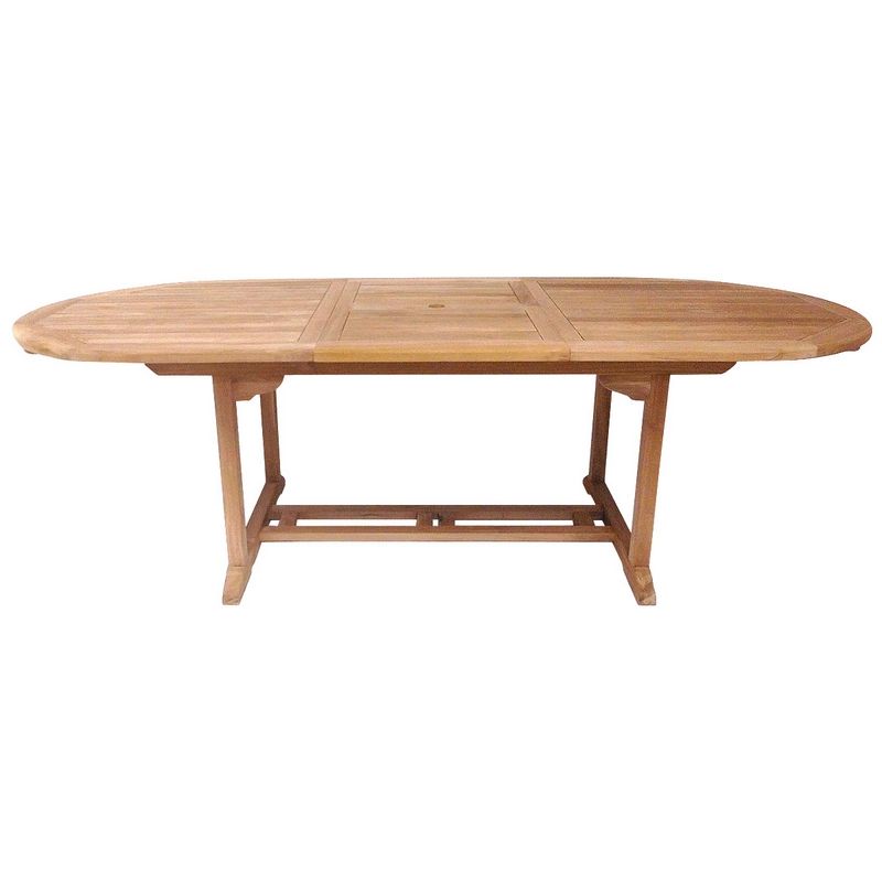 This product is offered for sale for home delivery exclusively via our website only. Perfect for entertaining guests this summer, this wooden oval teak extending table will help provide the perfect outdoor dining setting. Sustainably sourced and crafted from the finest Indonesian hardwood, this beautiful teak oval table is designed to last and can seat up to 8 people. This high quality table can be easily extended from 180-240cm, ideal for accommodating family and friends at both parties and barbecues. Finished with a central hole for a parasol to keep cool in the shade on warm summer days, this teak wooden oval table can save you space when not in use.