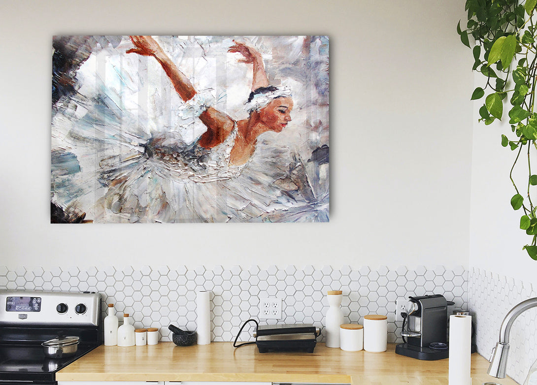 White Ballerina 2 acrylic print, UV printed onto 5mm thick acrylic glass. Comes with everything you need to hang on your wall.