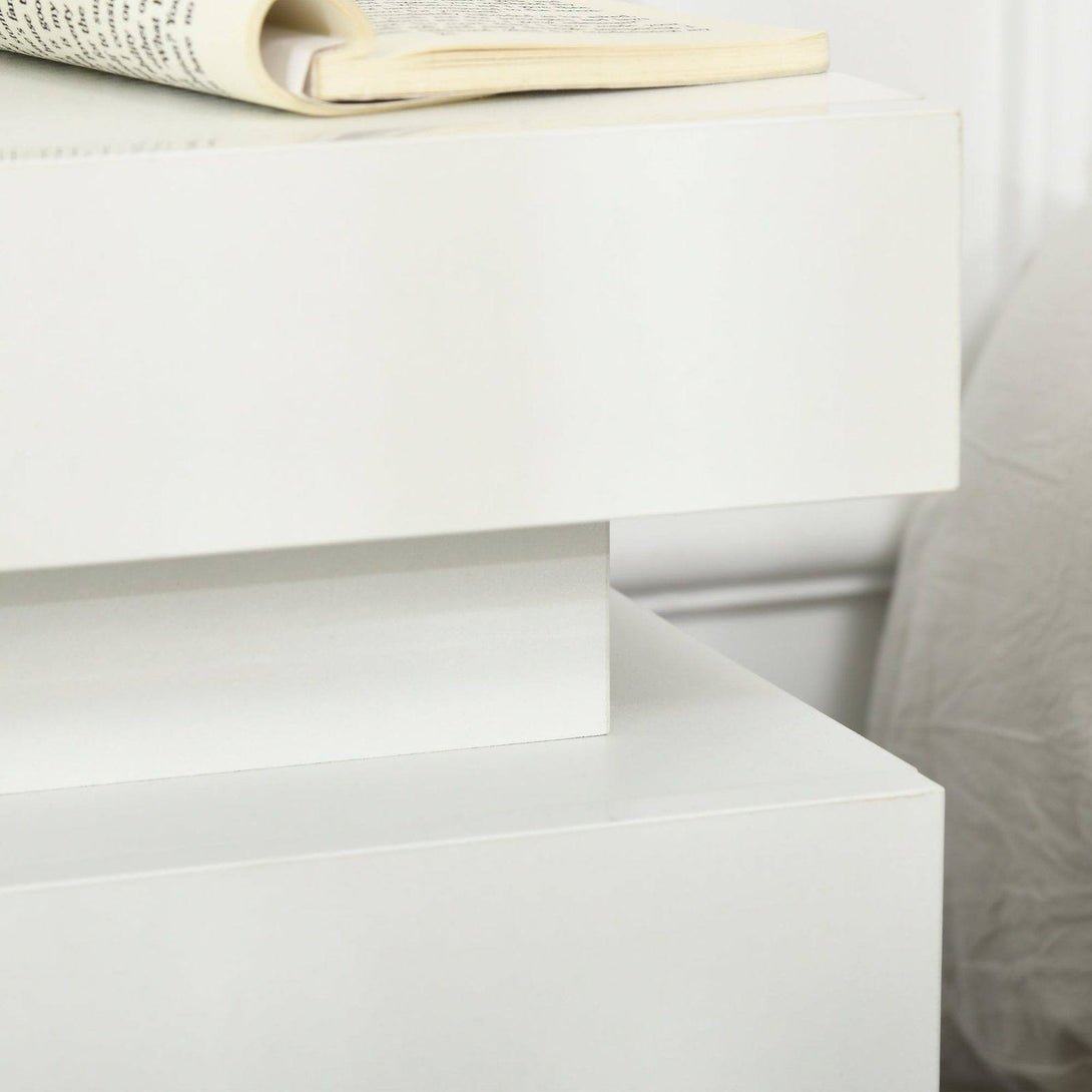 White Bedside Table with LED Light