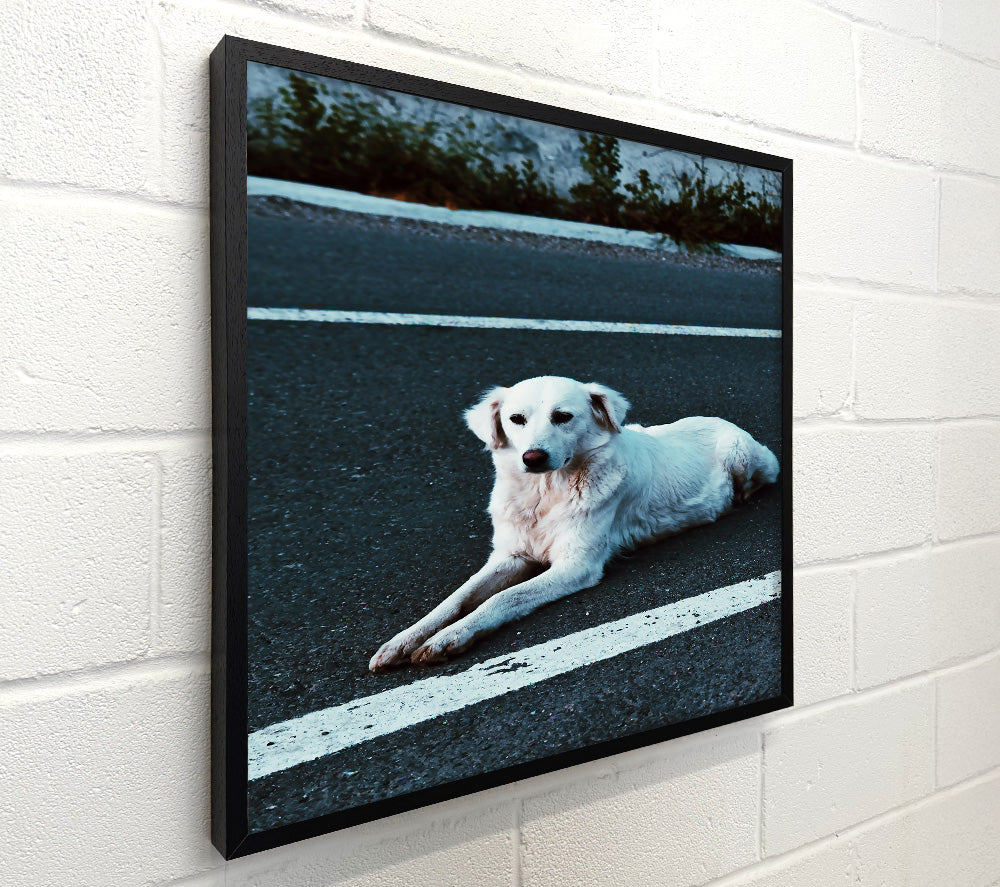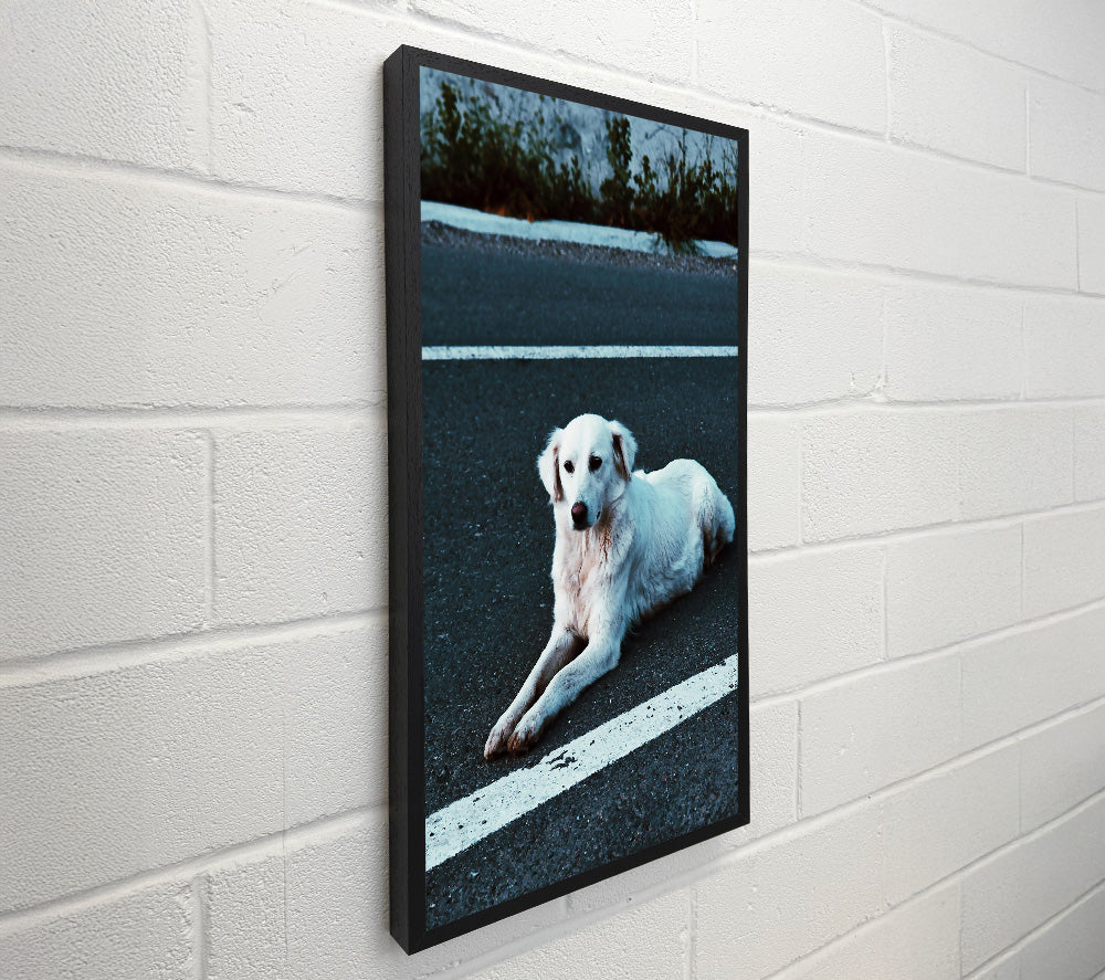 White Dog On Black Asphalt