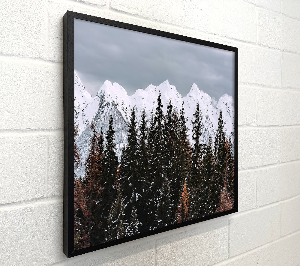 White Peaks Through Pines