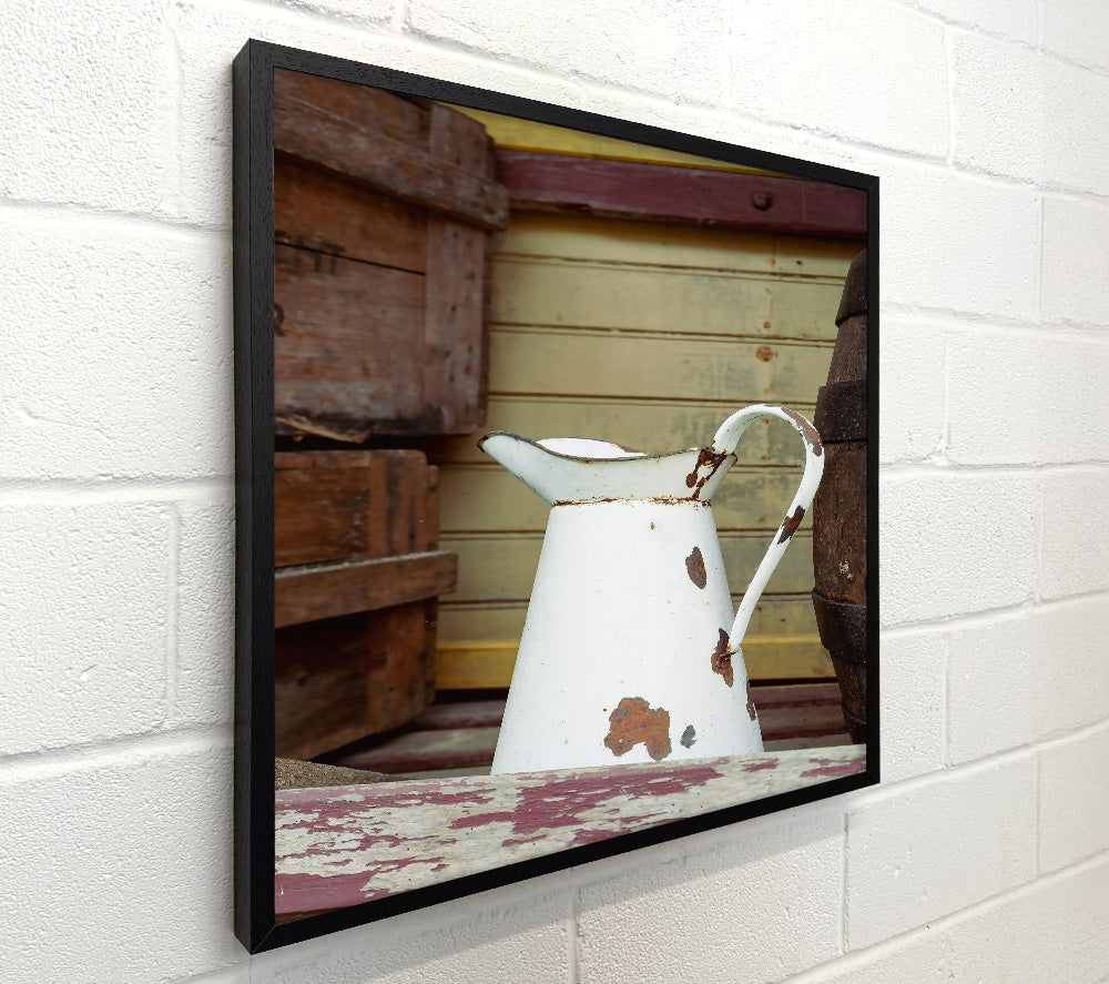 White Pitcher With Rust Spots.