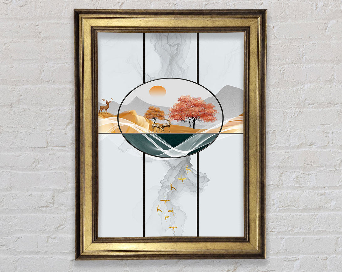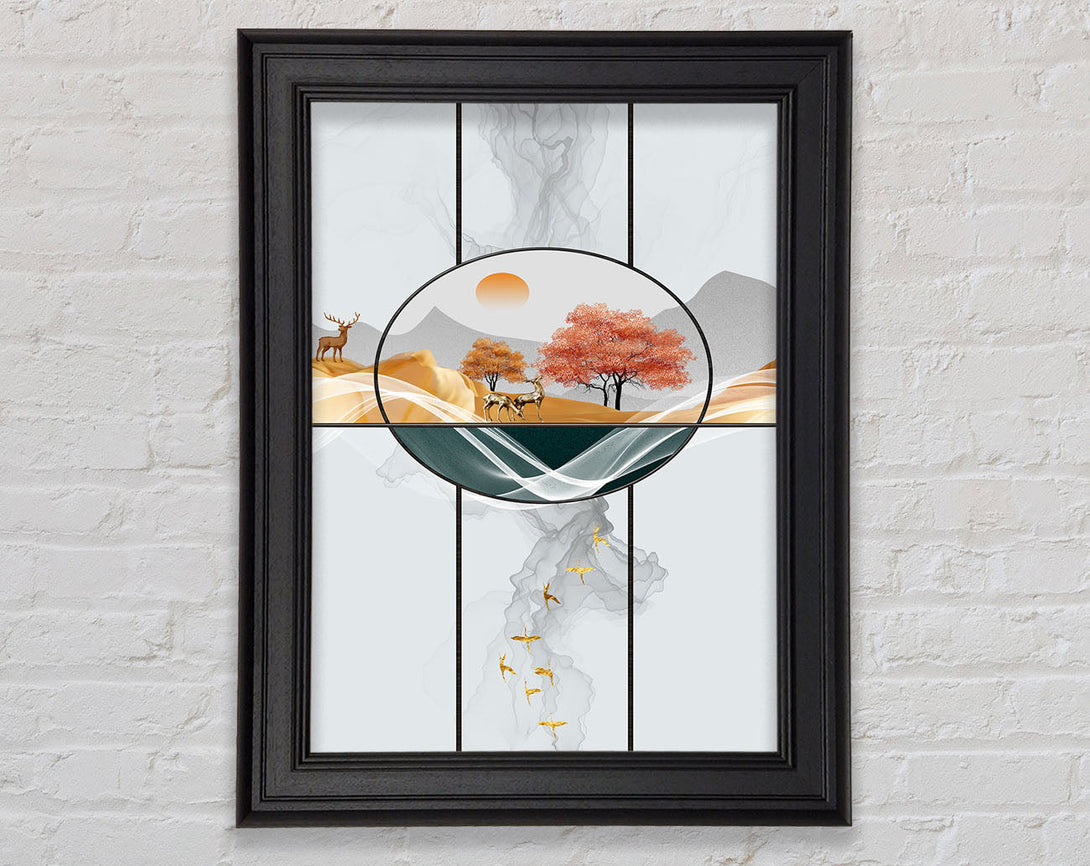White Shapes Mountain View Stag Framed Print