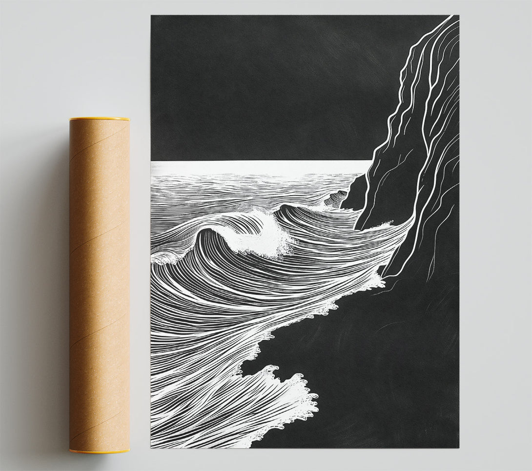 White Waves Crashing Poster