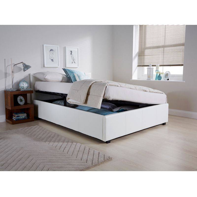 Winston Double Ottoman Bed Faux Leather White 5 x 7ft