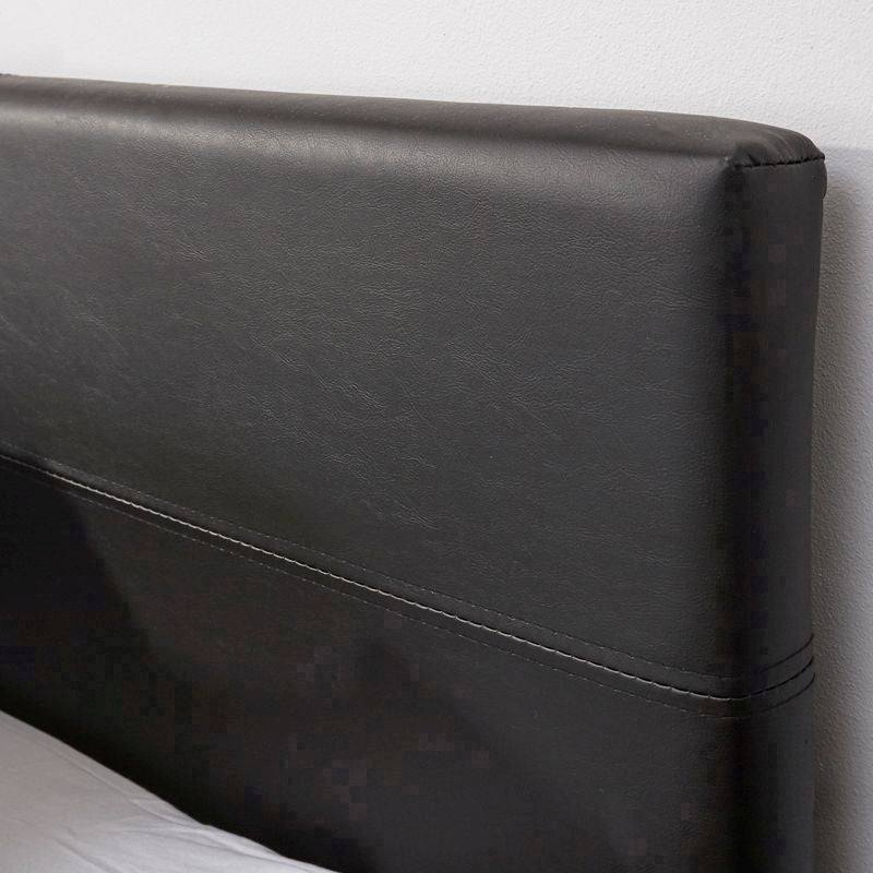 This stunning black faux leather end lift ottoman bed offers an attractive combination of contemporary style and ample storage space. This beautifully crafted frame is finished in high quality Black faux leather and complemented by a simple yet stylish stitched headboard. This is an ideal solution if space is at a premium in your bedroom as the ottoman base provides generous storage space for linen, blankets, towels or clothes. The base lifts easily with the help of a gas hydraulic system so you can access the lined storage area underneath the bed. Part of the Winston Collection.