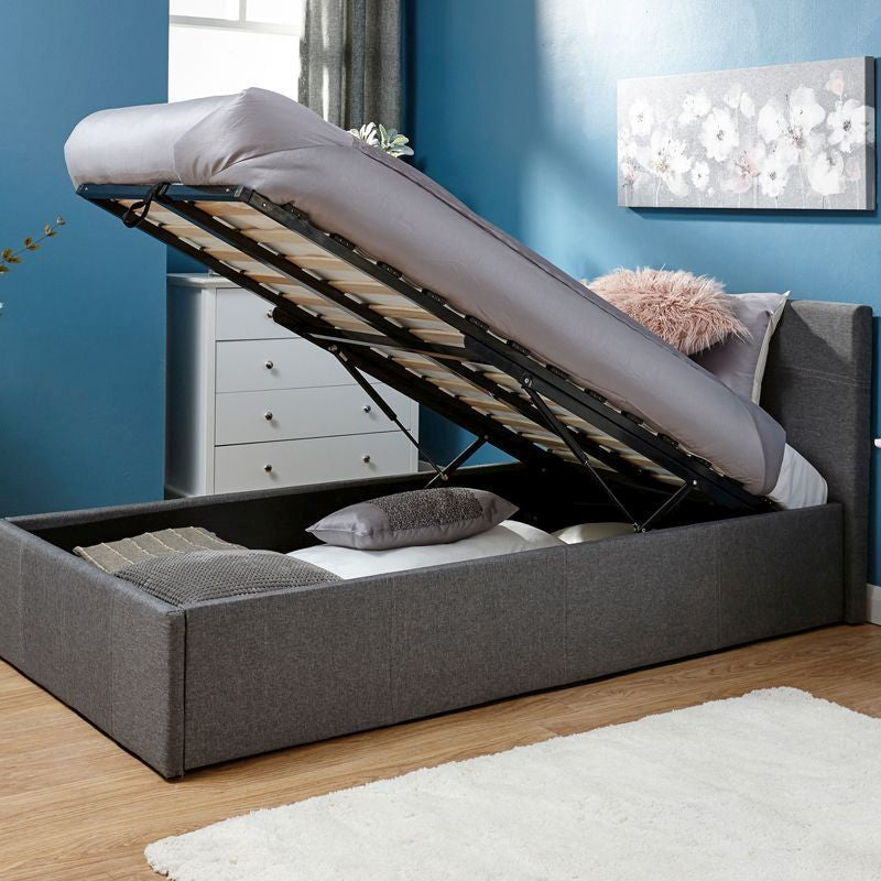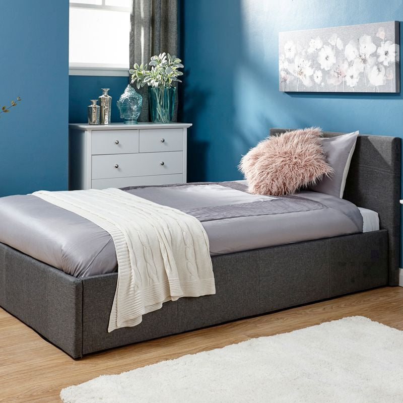 Winston Single Ottoman Bed Fabric Grey 3 x 7ft
