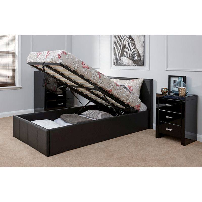 Winston Single Ottoman Bed Faux Leather Black 3 x 7ft