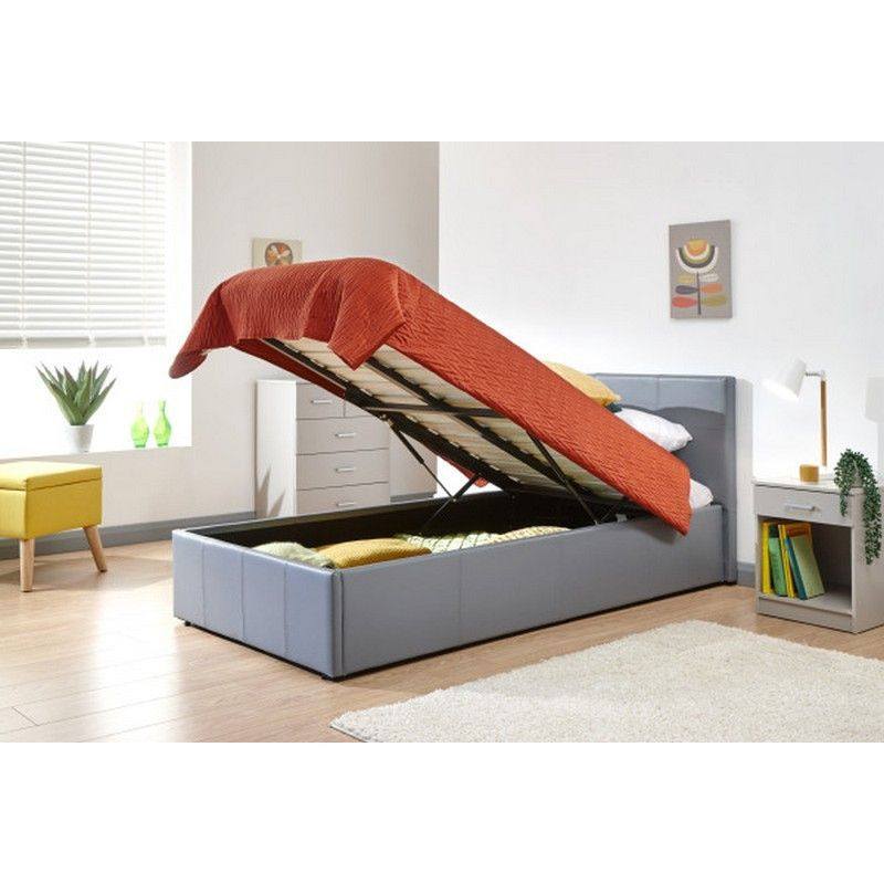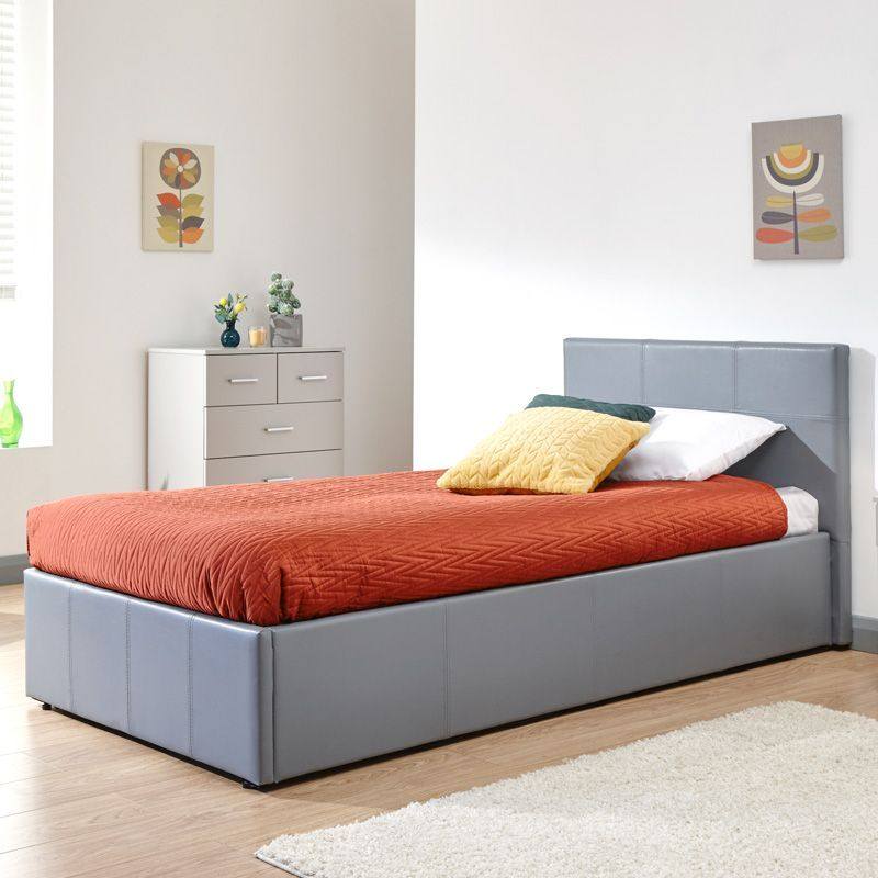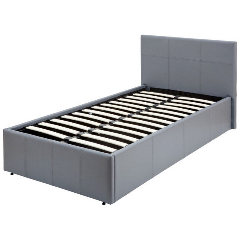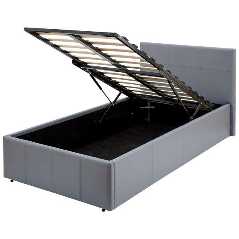 Winston Single Ottoman Bed Faux Leather Grey 3 x 7ft