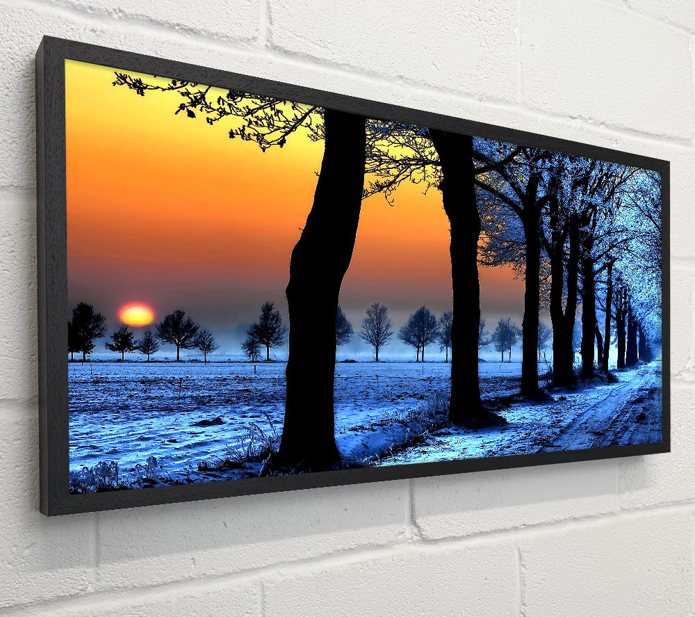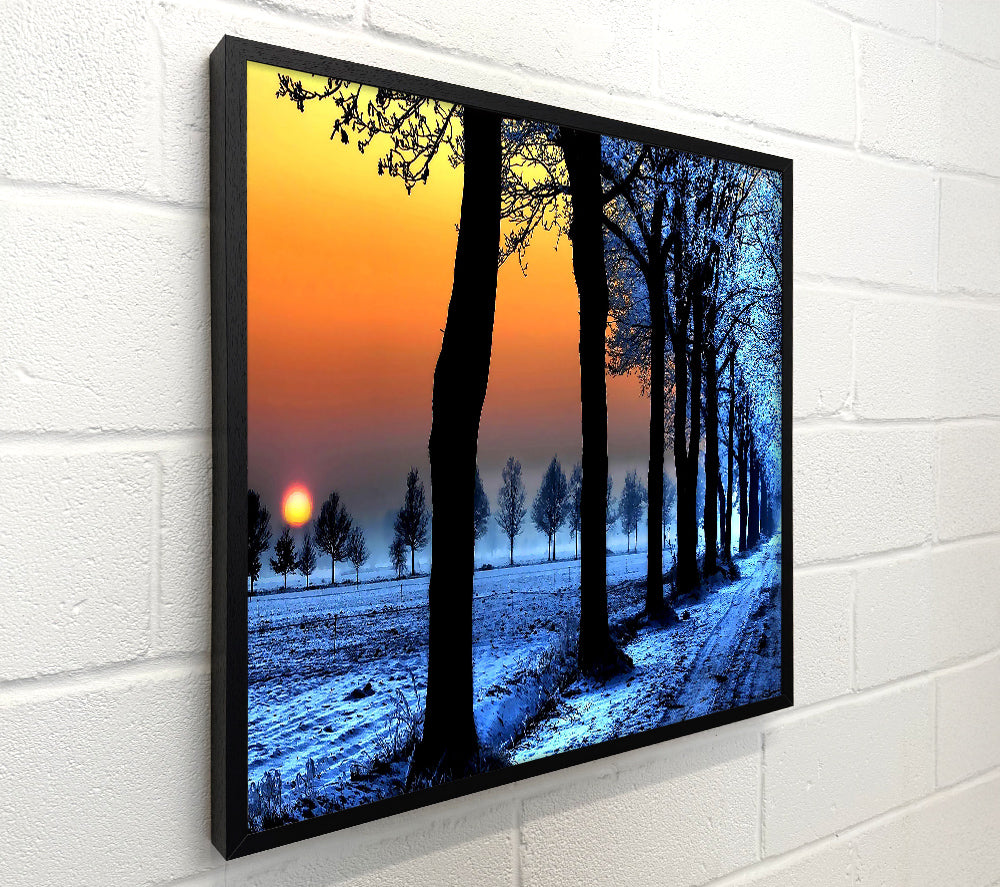 Winter Landscape With Orange Sky