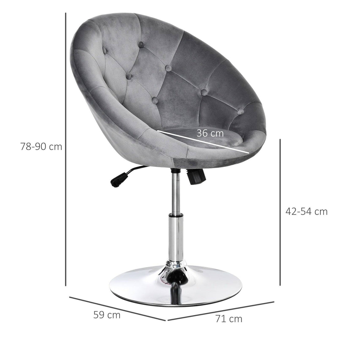 It's charming, soft and sophisticated: this kitchen stool from HOMCOM. For the kitchen dining areas, living spaces and beyond, the adjustable stool is bound to make an impression wherever it stands. The seat is made into a large round shape for a retro look, with the button tufting accentuating its effect. The stool to sit on is wrapped in soft velvet-feel upholstery, with a high back for support and a padded seat for comfort.
