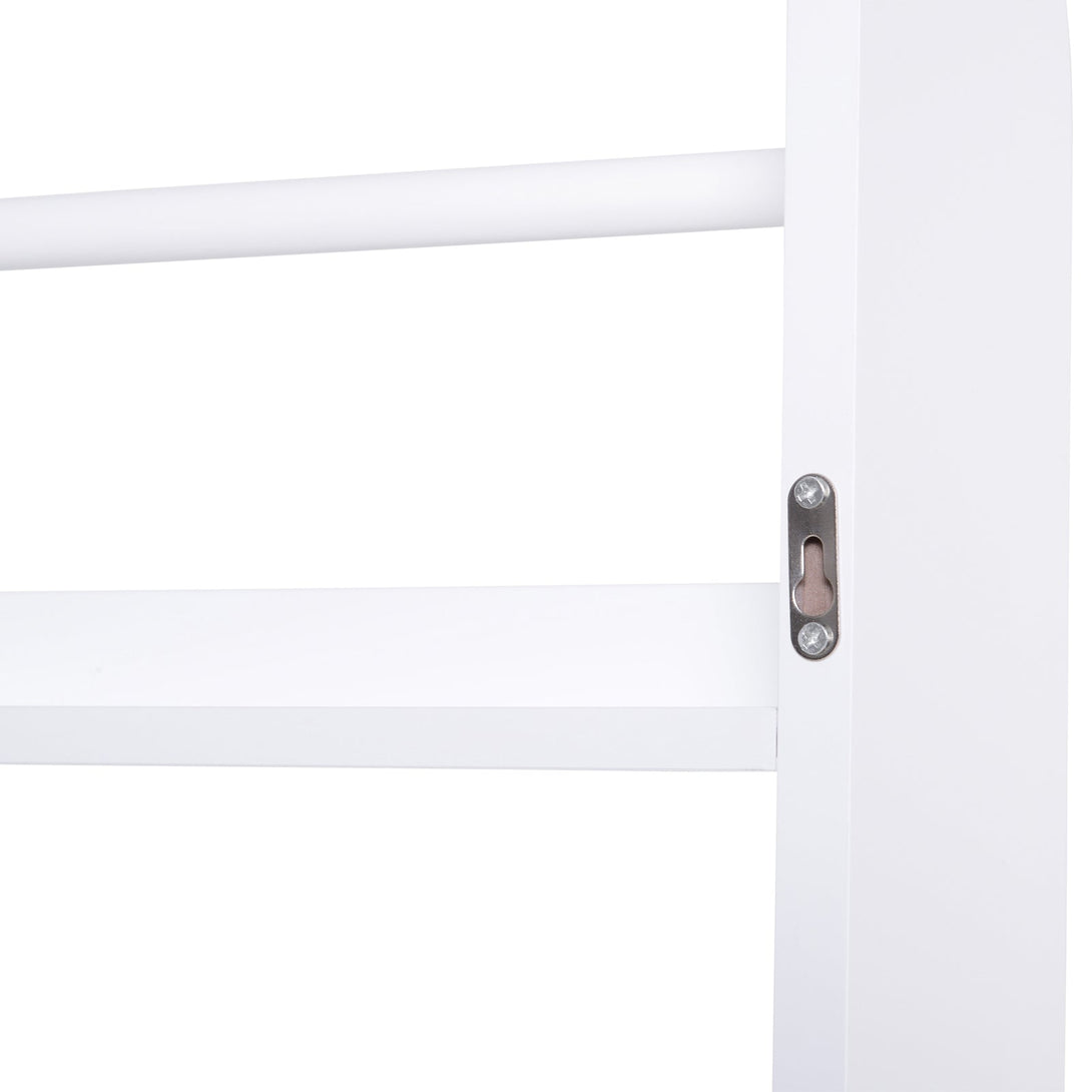 Bring your own unique character to your walls, whilst simultaneously saving floor space in your home with this hanging wall bookshelf from HOMCOM. Covered in water resistant white paint for a fresh tone which complements your home effortlessly, it is made from a blend of solid wood and MDF to prolong its lifespan, with it featuring four large shelves with a double barrier, allowing you to display books, magazines, papers and more without them falling out. Its easy to keep fresh too simply wipe over with a damp cloth to keep looking like new all-year round. All wall-mounting accessories included.