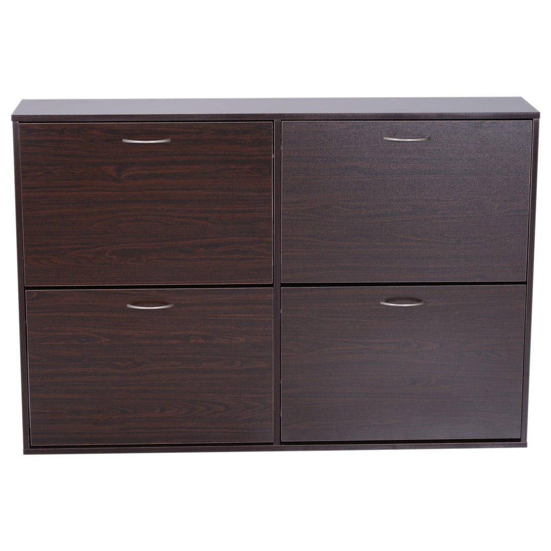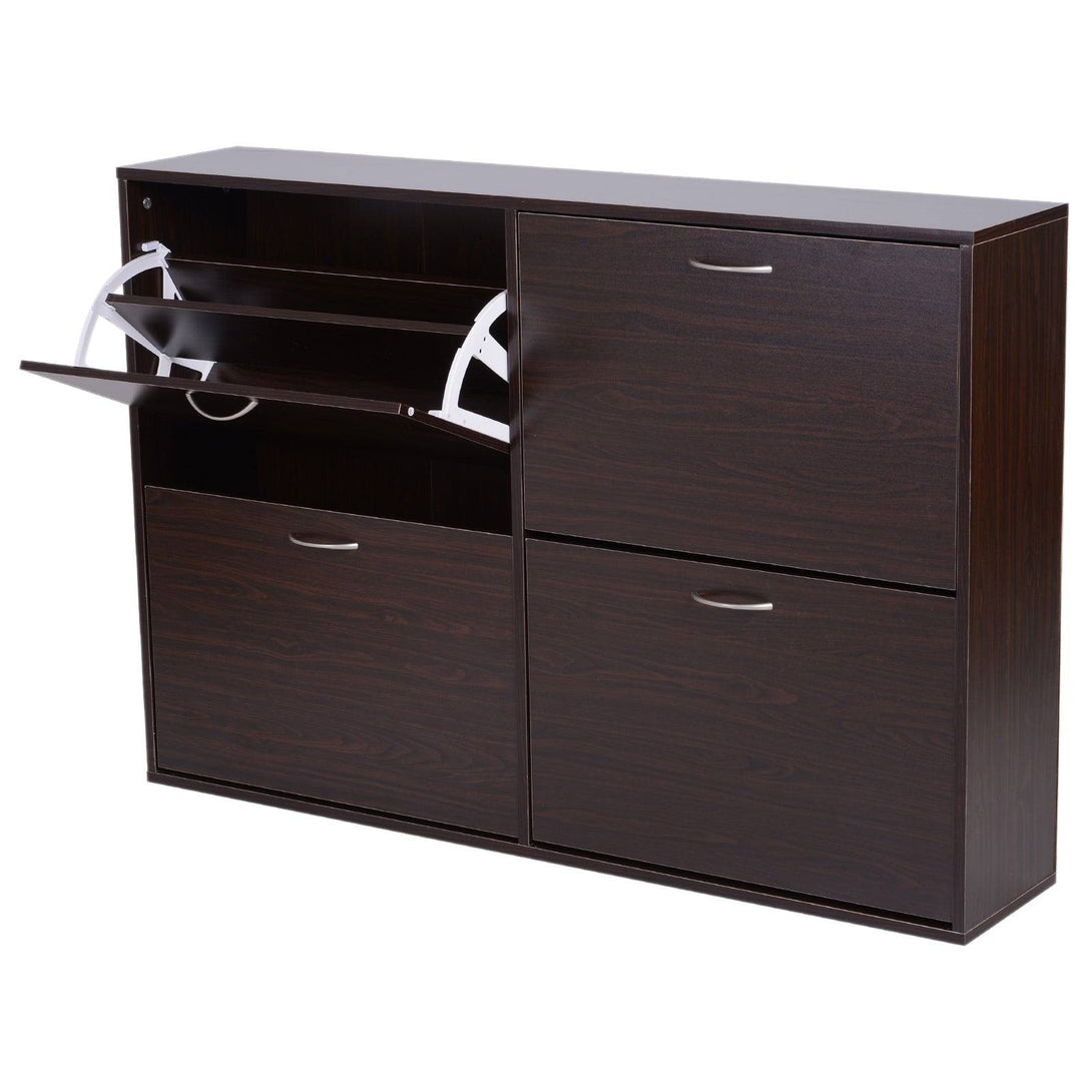 Wooden Modern Design 4 Drawer Shoes Cabinet Pull Down Shelf Storage Organiser Entrance Hallway Furniture - Dark Brown