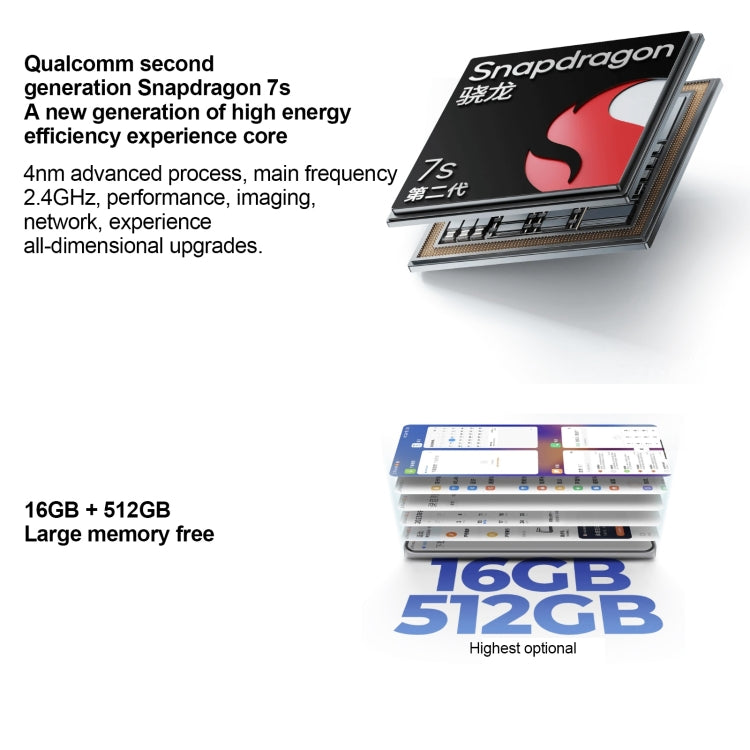 1. Processor: Qualcomm 2nd generation Snapdragon 7s high energy efficiency experience core 4nm eight-core processor, clocked up to 2.4GHz