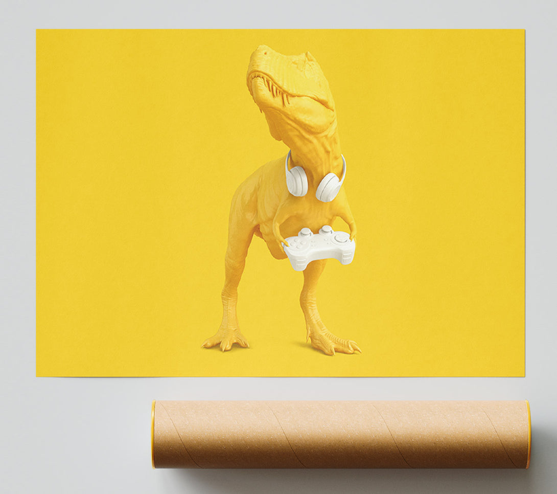 Yellow Dinosaur Gamer Giclee Print