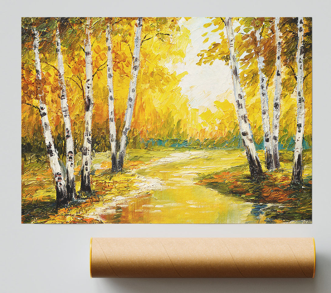 Our Yellow Silver Birch Walk Poster is printed 260 GSM premium lustre paper that offers vibrant colours and exceptional detail.