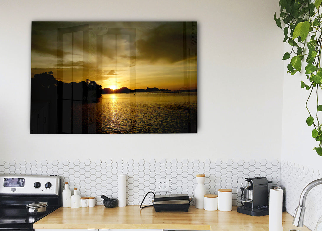Yellow Sun Reflections acrylic print, UV printed onto 5mm thick acrylic glass. Comes with everything you need to hang on your wall.