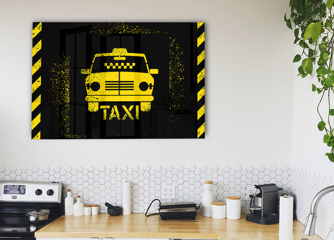 Yellow Taxi acrylic print, UV printed onto 5mm thick acrylic glass. Comes with everything you need to hang on your wall.