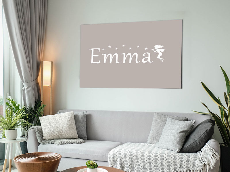Your Name In Fairy Dust Beige Printed on brushed aluminium dibond. A modern way to display art and easy to maintain.