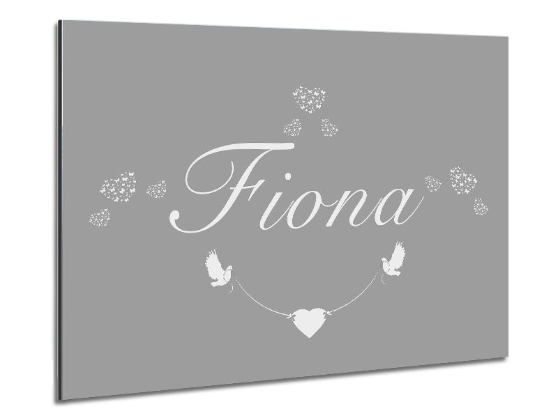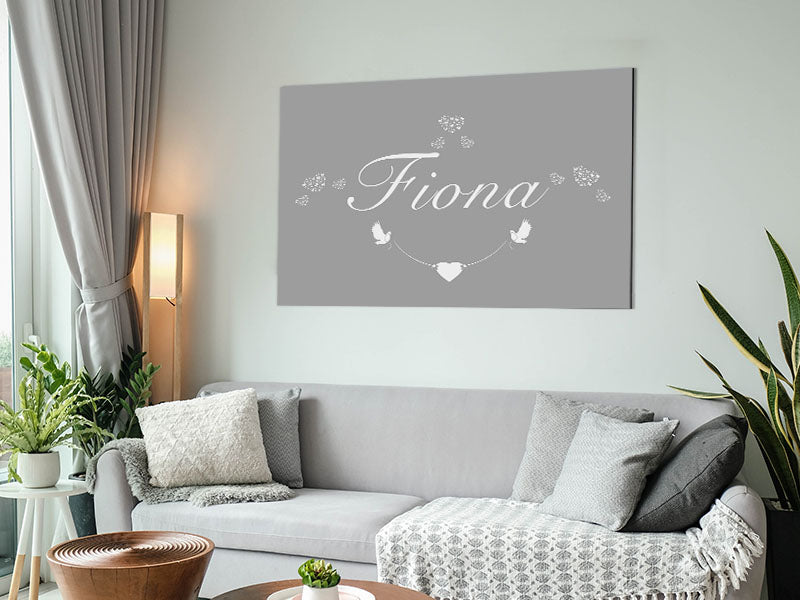 Your Name In Hearts Grey White Printed on brushed aluminium dibond. A modern way to display art and easy to maintain.