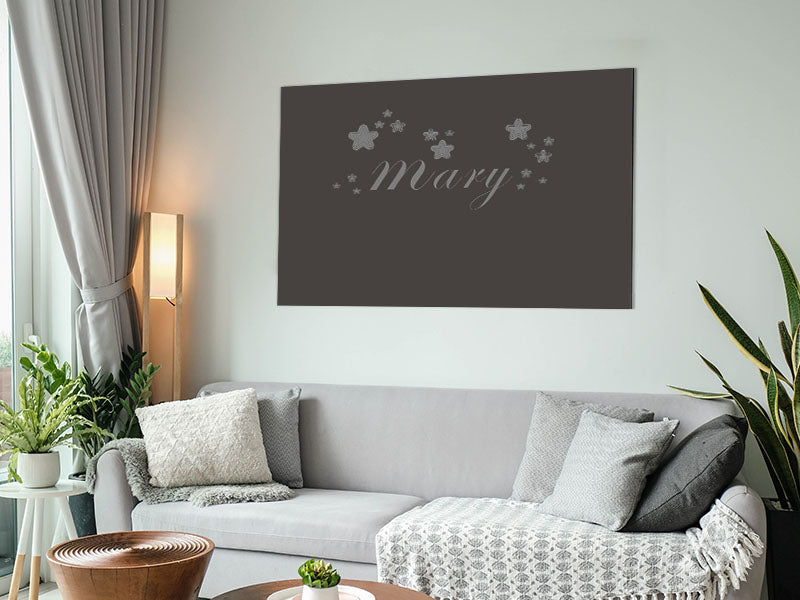 Your Name In Stars Chocolate Printed on brushed aluminium dibond. A modern way to display art and easy to maintain.