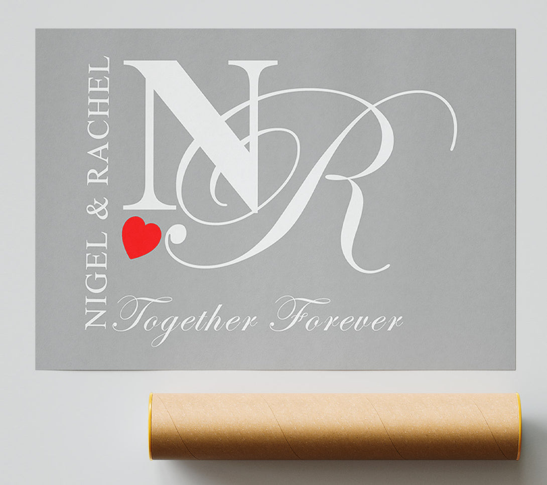 Our Your Names And Initials Together Forever Grey White Poster is printed 260 GSM premium lustre paper that offers vibrant colours and exceptional detail.