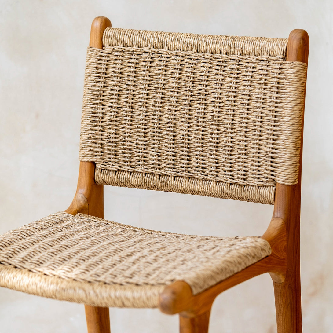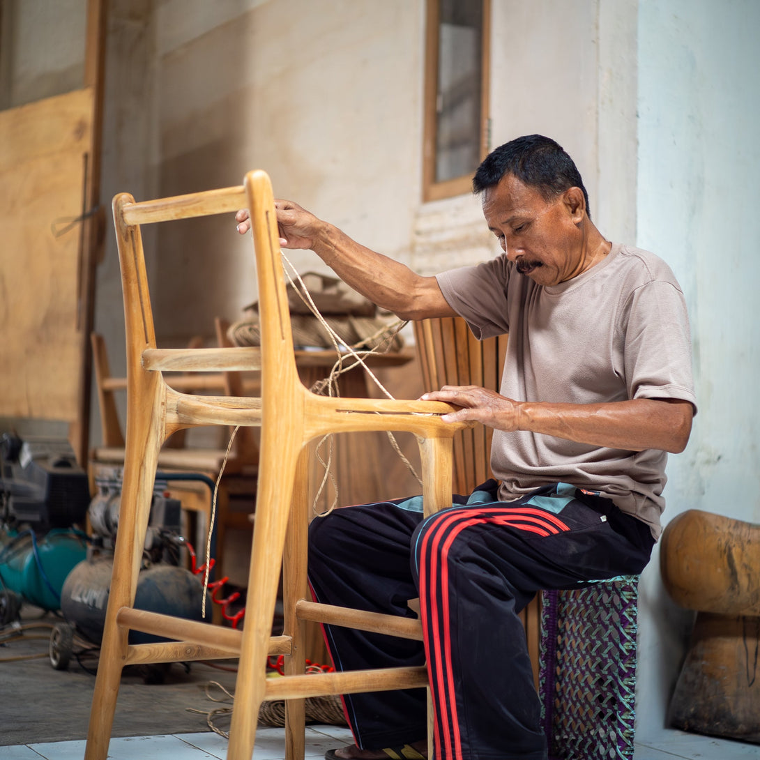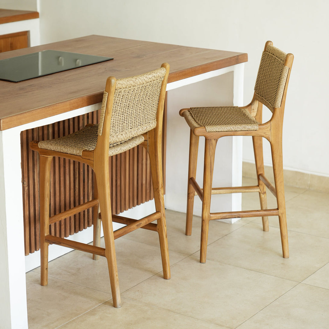 Each stool takes over two weeks to make, using teak wood that has been kiln dried to reduce moisture and ensure long-lasting strength. The frame is then handwoven with two layers of high-quality rattan, chosen for its flexibility and ability to maintain its shape over time. The result is a stool that offers gentle spring and lasting comfort, even with daily use. Naturally resistant to mould and humidity, this rattan makes the stool ideal for kitchens and bar areas. With a seat height of 65cm, it fits standard UK counter heights perfectly. Made slowly in small batches and never mass produced, each stool is a rare piece of craftsmanship built to be beautiful, practical, and made to last.