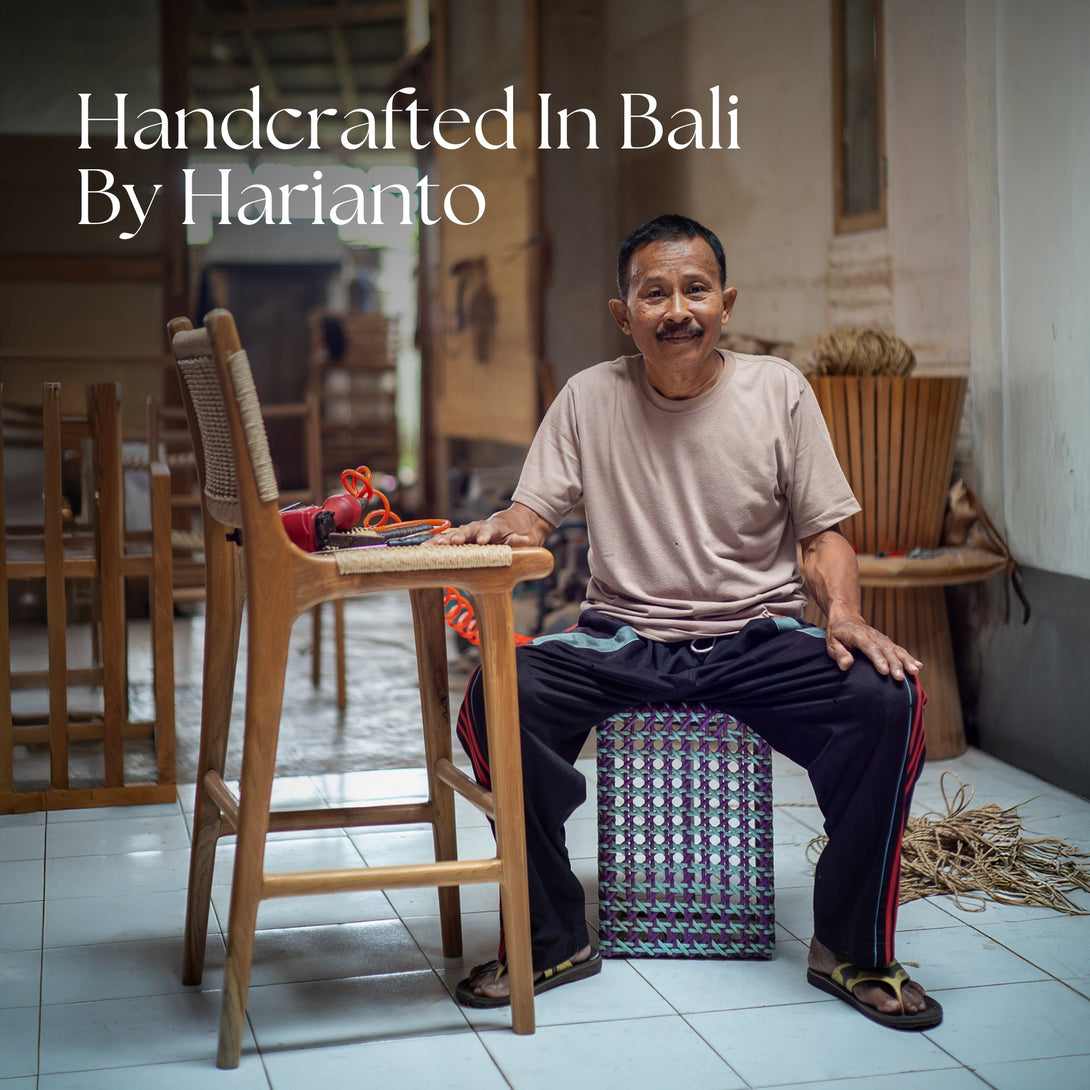 The Zara Bar Stool is crafted by hand using a strong rattan blend, chosen for its durability and shape-holding structure. Each cord is tightly wrapped around a solid teak frame by skilled artisans using traditional techniques. Once complete, the stool is lightly varnished to seal and protect the surface. Unlike natural fibres, this blend won’t sag or discolour over time, making it ideal for busy homes. Every stool is a balance of modern practicality and traditional craft, built to be lived with and appreciated for years.